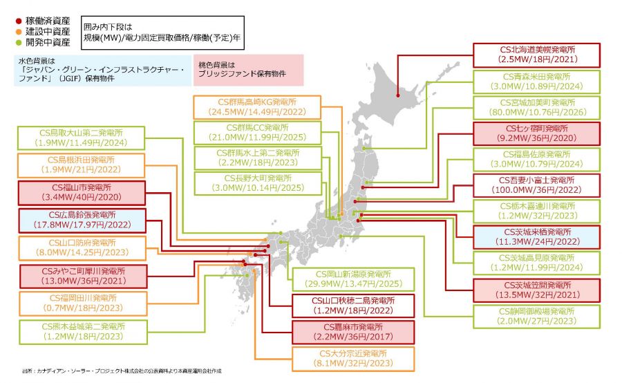 大型太陽光発電設備を含む豊富なスポンサーポートフォリオ